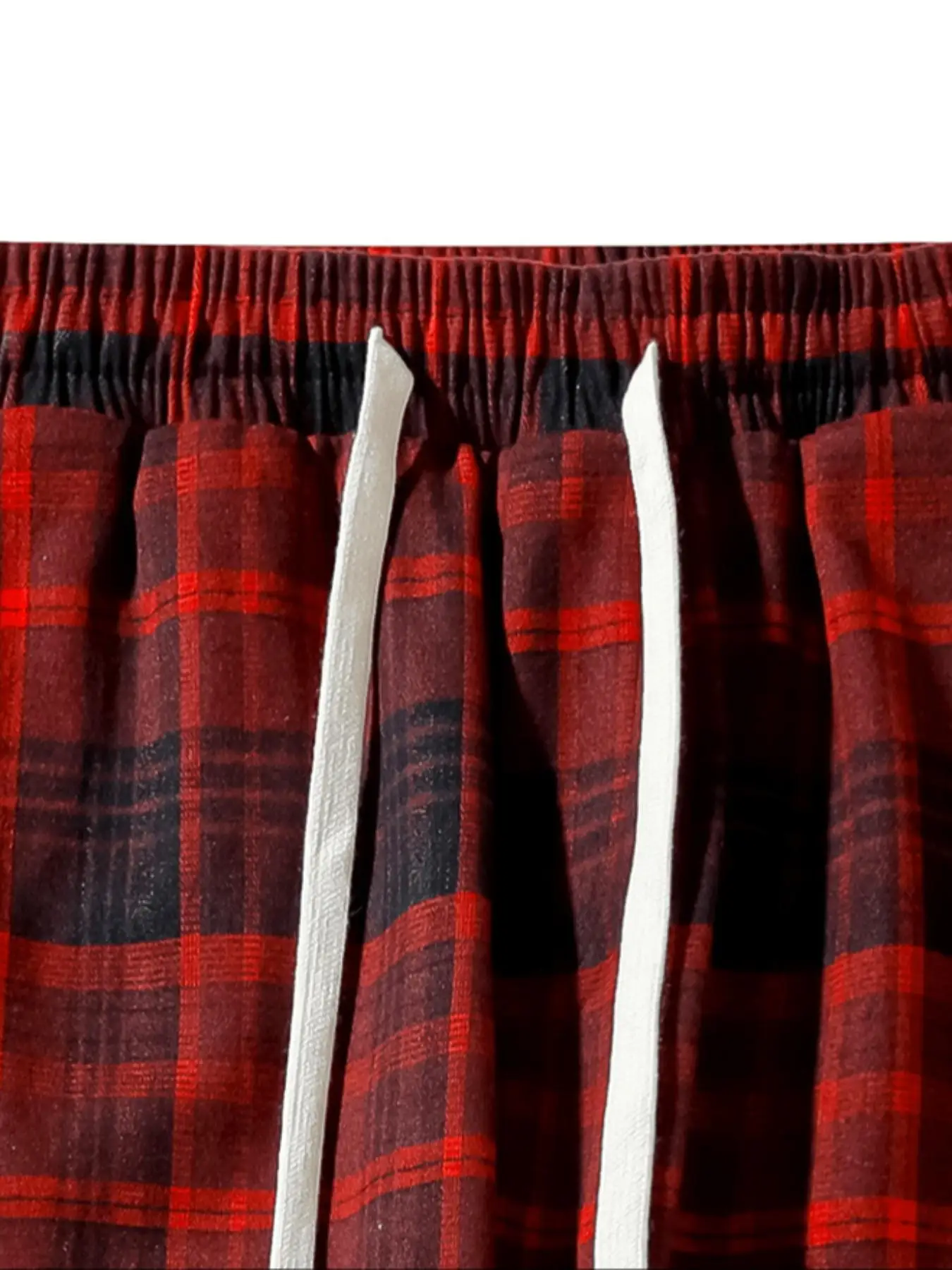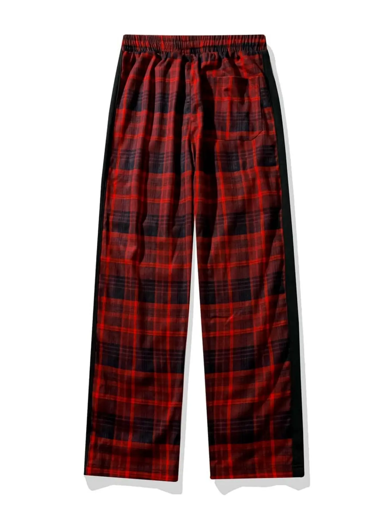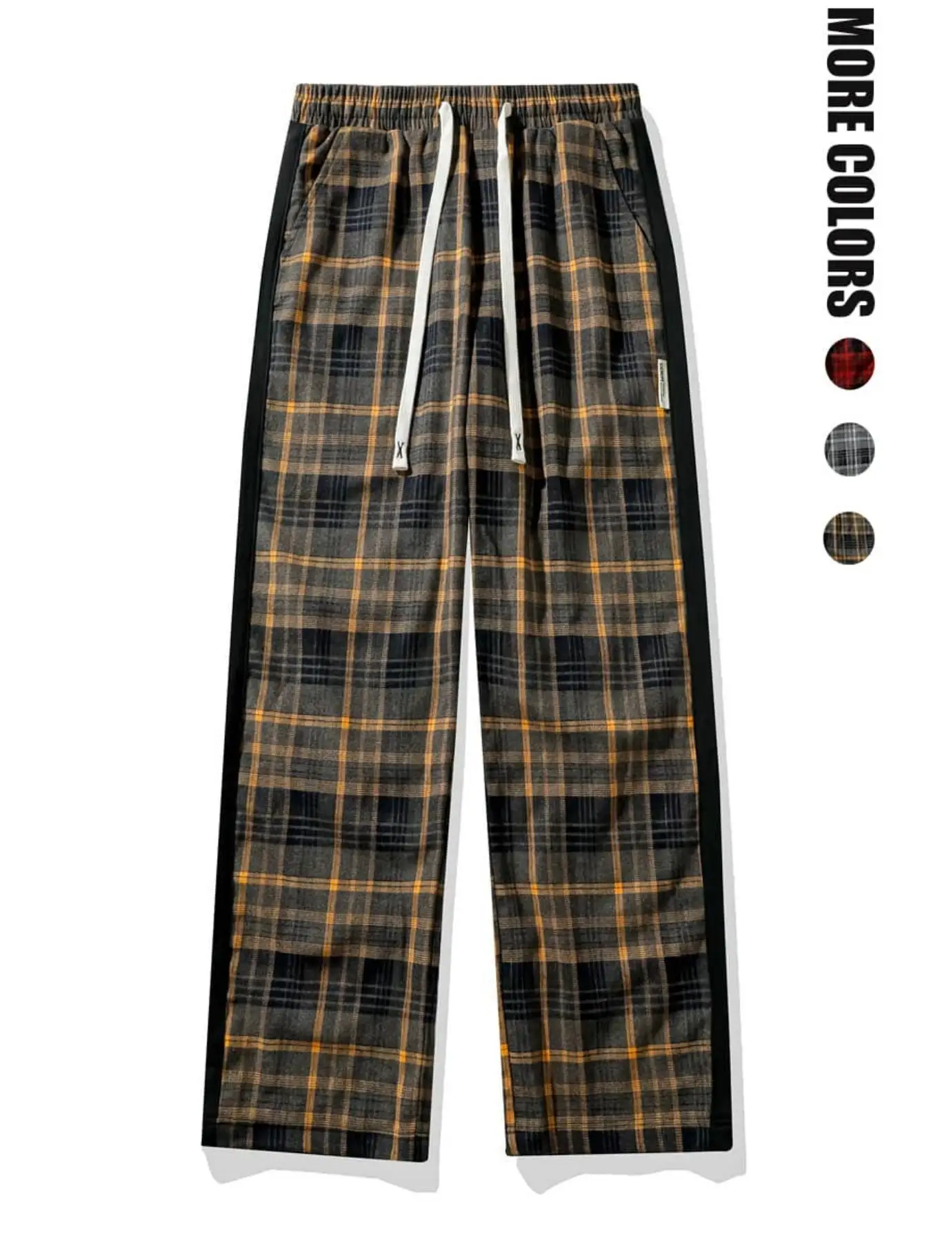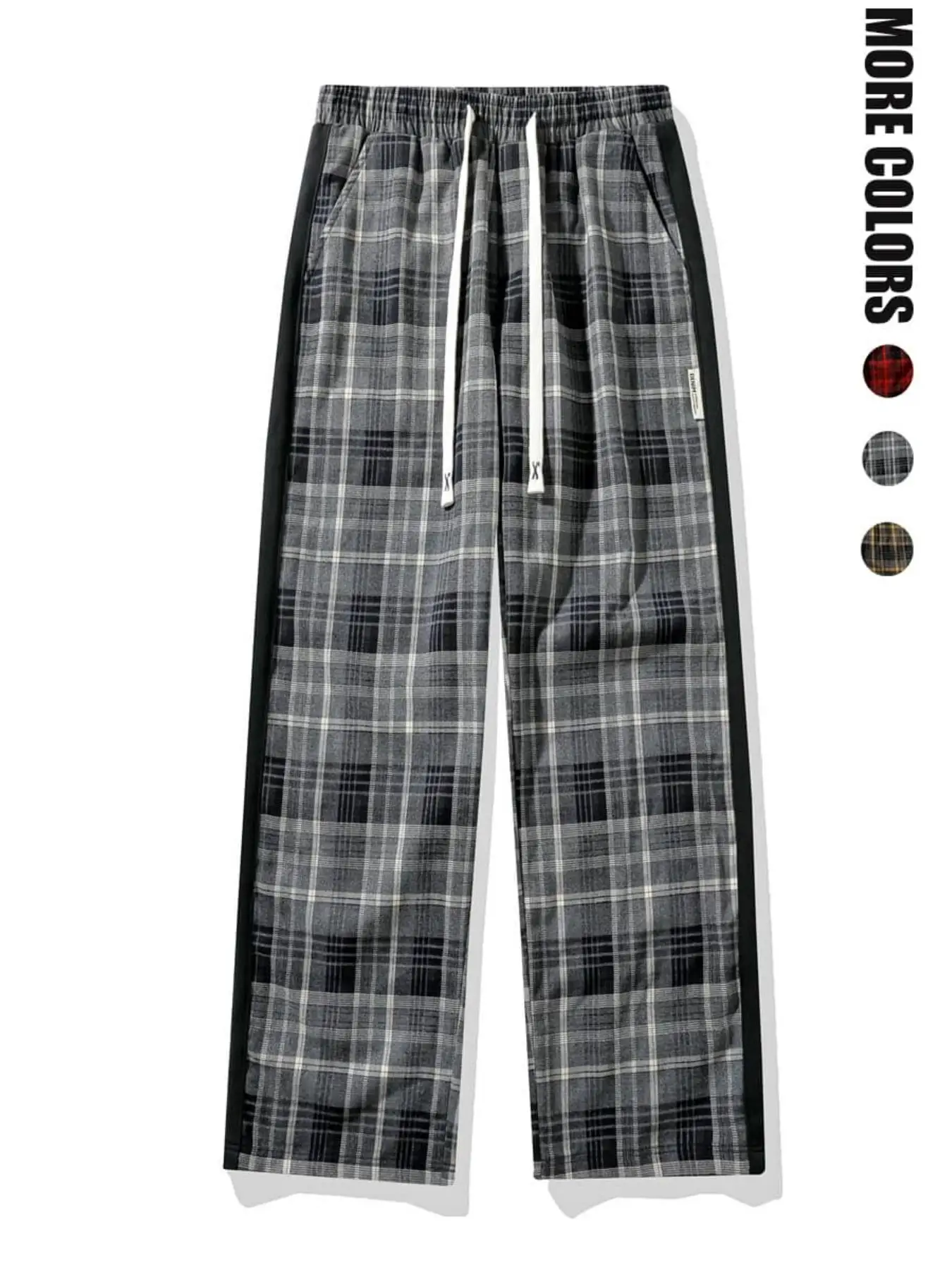 1 Piece of Men’s Regular Style Retro Plaid Sports Casual Pants with Drawstrings and Elastic Waistband, Loose, Straight, Suitable for Daily Leisure, Street Basketball, Fitness, Multi-Scenario Matchinging, Suitable for All Seasons