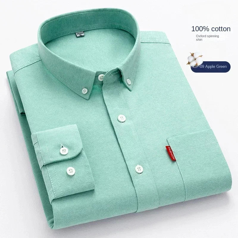 100% Pure Cotton Men’s Solid Color Long Sleeve Shirt Youth Casual Cotton Oxford Spun Large Size Shirt Men’s