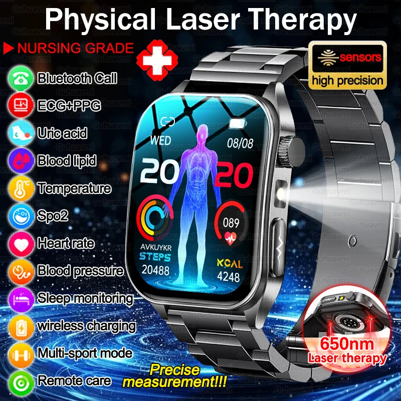 2026 New Health Smart Watch Laser Therapy Reduce Three Highs Blood Oxygen Pressure Uric Acid Blood Lipid ECG Smartwatch For Man