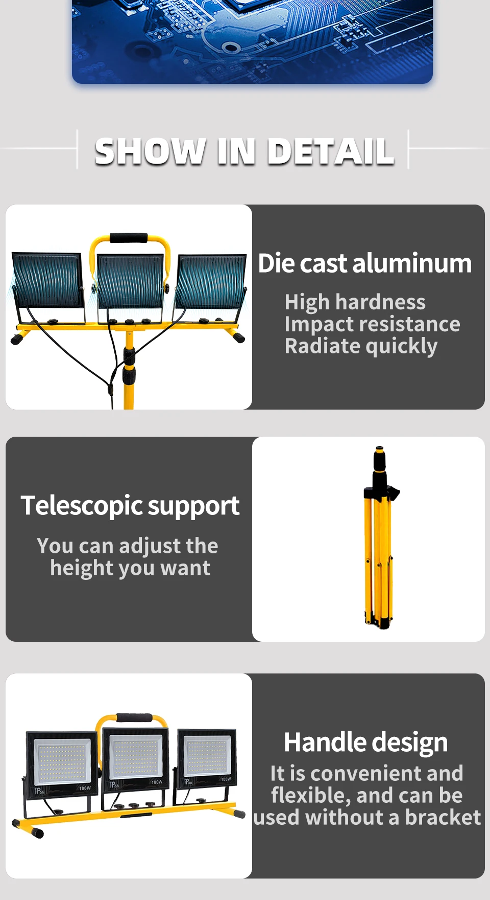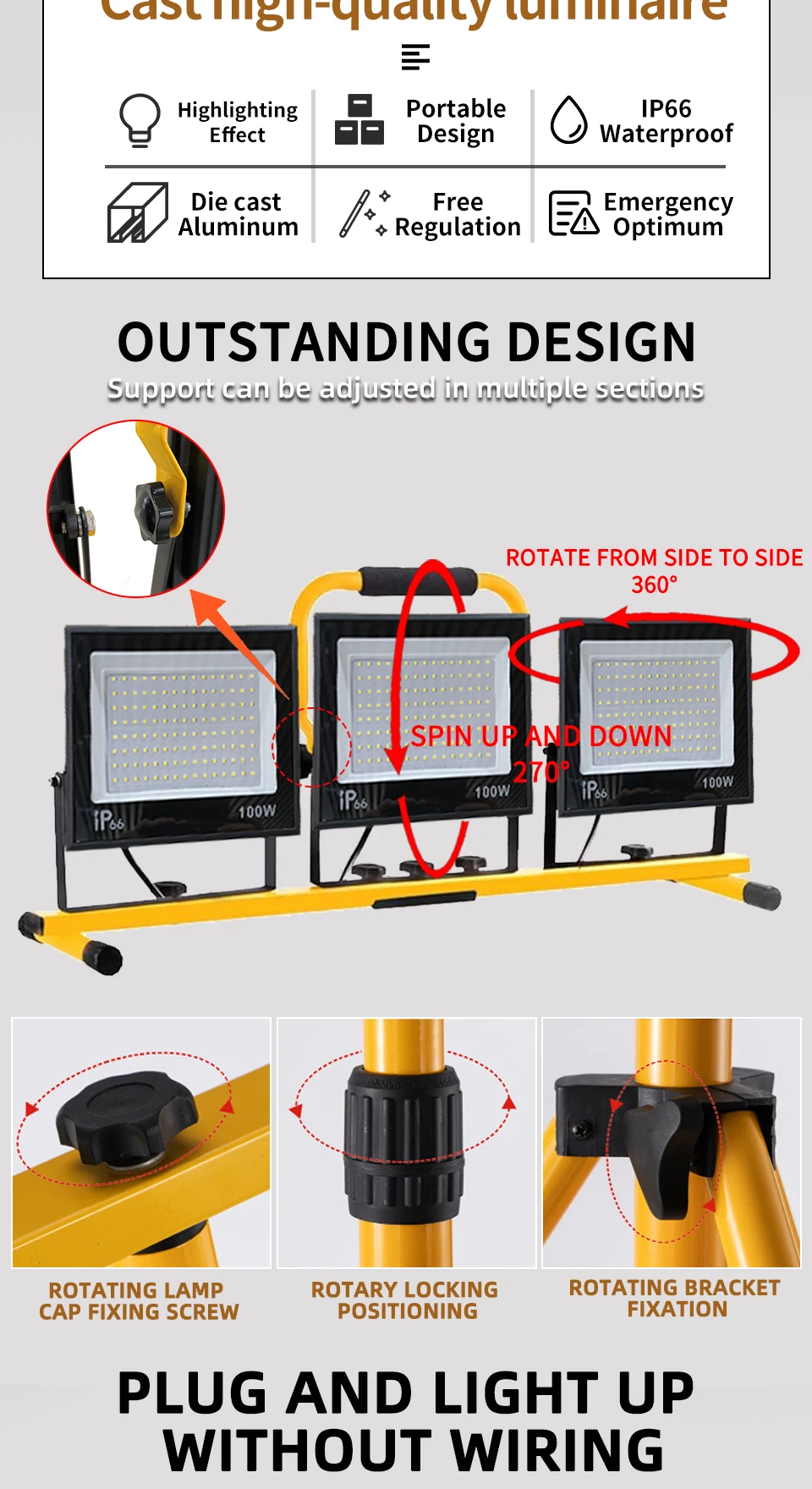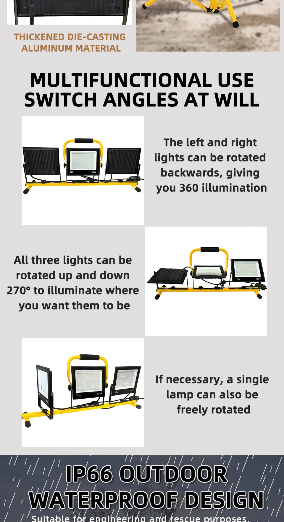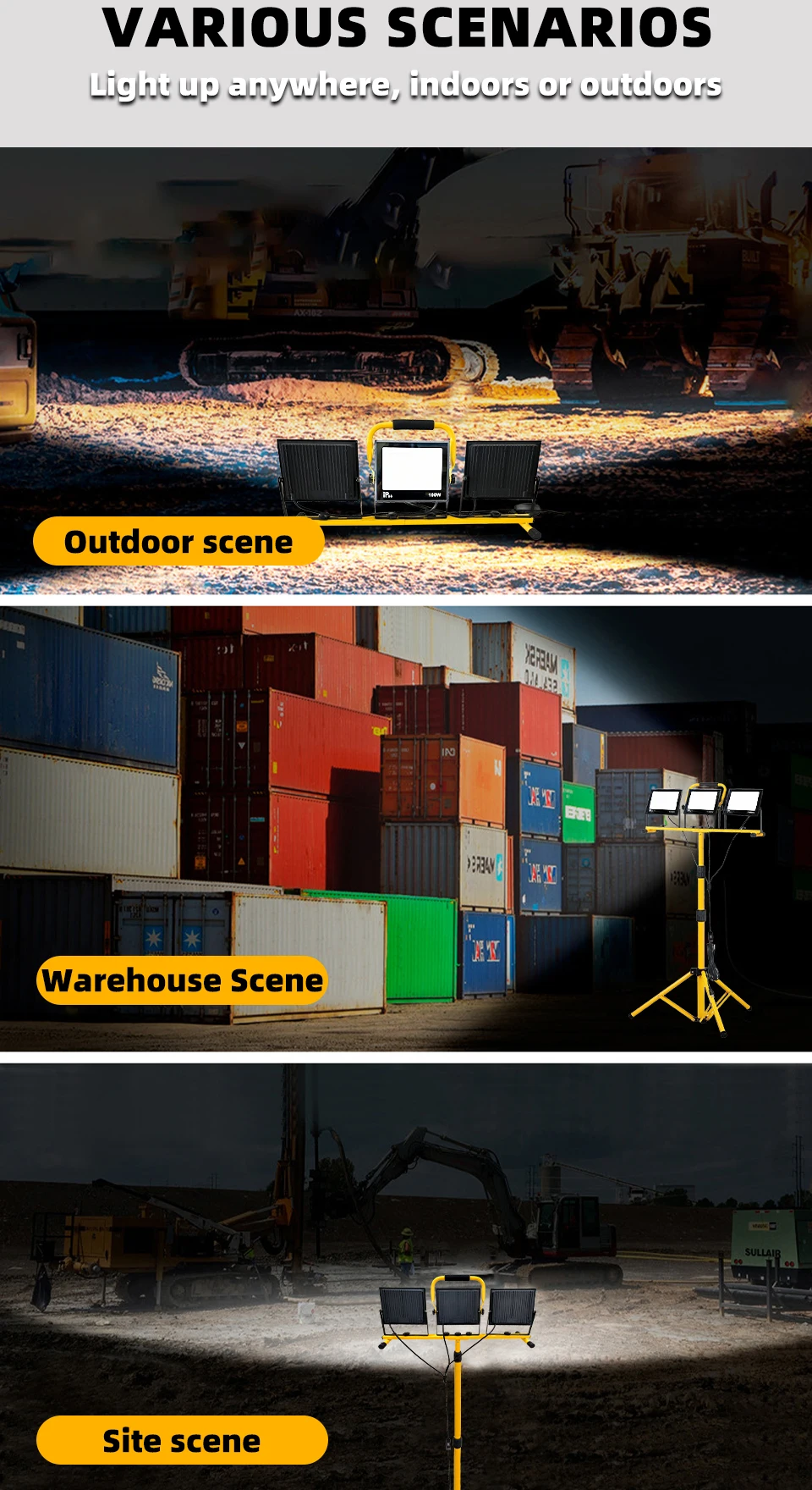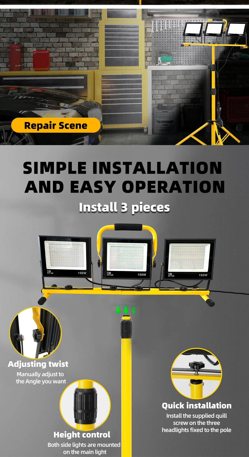 30000 Lumen Work Lights with Stand,Waterproof Outdoor Portable Flood Light,Adjustable Job Site Lighting for Garage Workshop