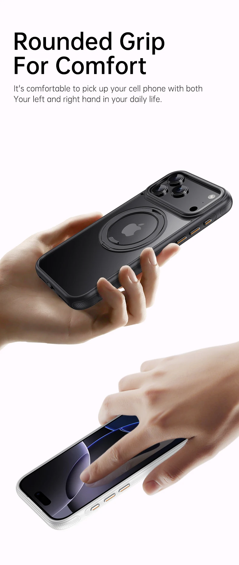>>The four-corner pore and shell frame design enhances breathability to prevent sweaty palms, while providing superior shock absorption and drop protection for your phone.
