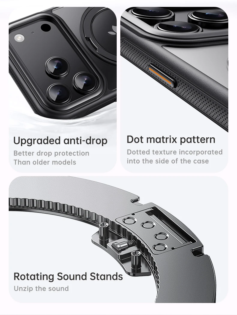 360° Mechanical Torque-Sound Rotating Stand Holder Magnetic Magsafe Phone Case For iPhone 16 15 14 13 17 Pro Max Plus 17Air 16E