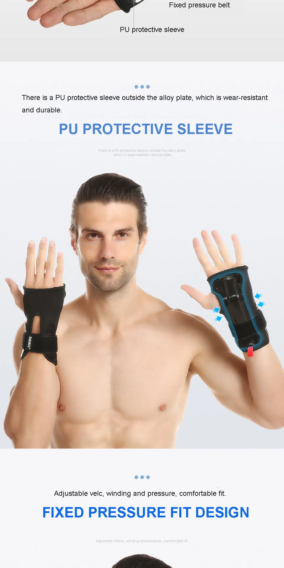 • The 38° golden angle aluminum alloy support plate fits the curve of the wrist, and the palm and wrist fit comfortably;