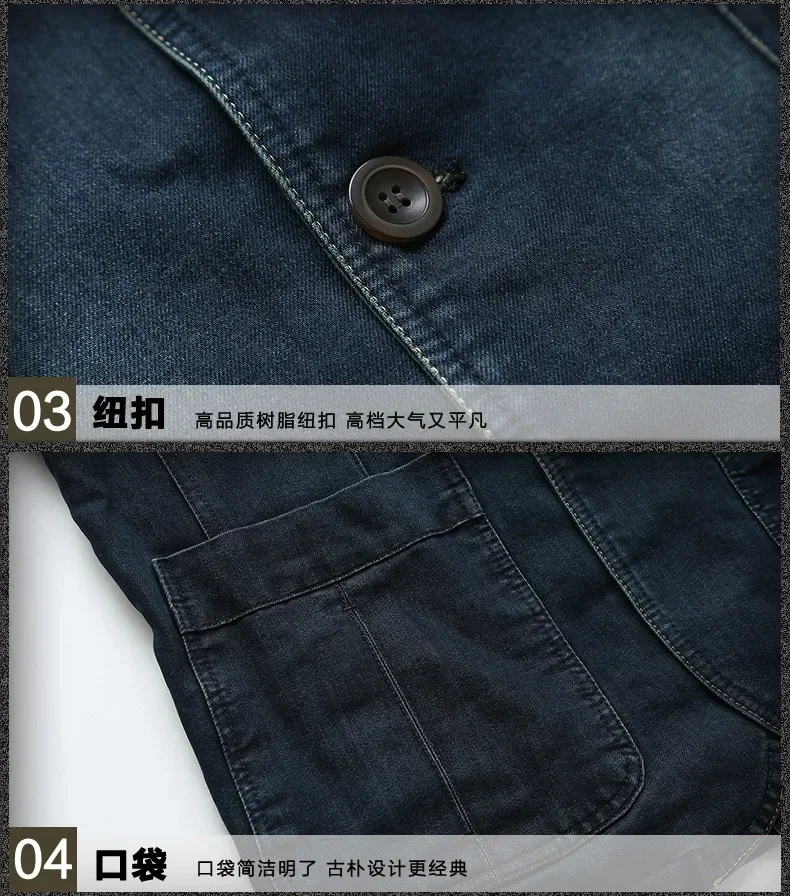 Be the first to review “Blazer Men’s Fashion Gentleman Business Retro Versatile Trendy Wedding Professional Casual Solid-color Host Cotton Denim Blazer” Cancel reply