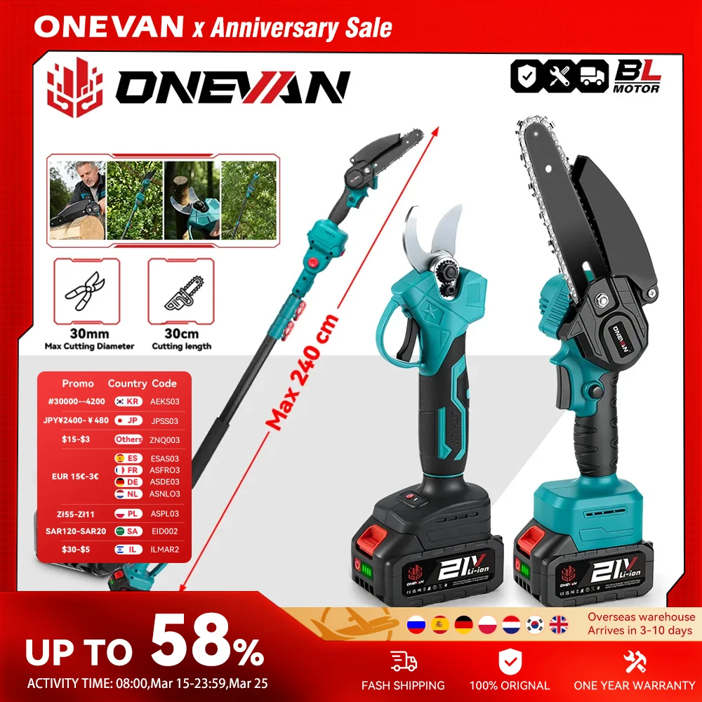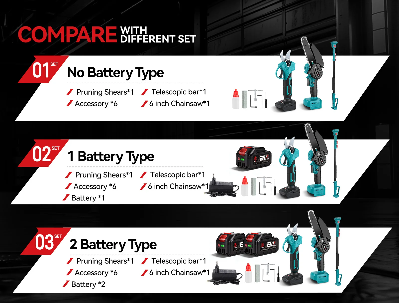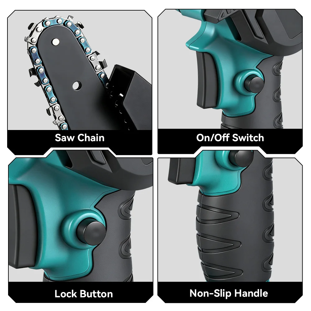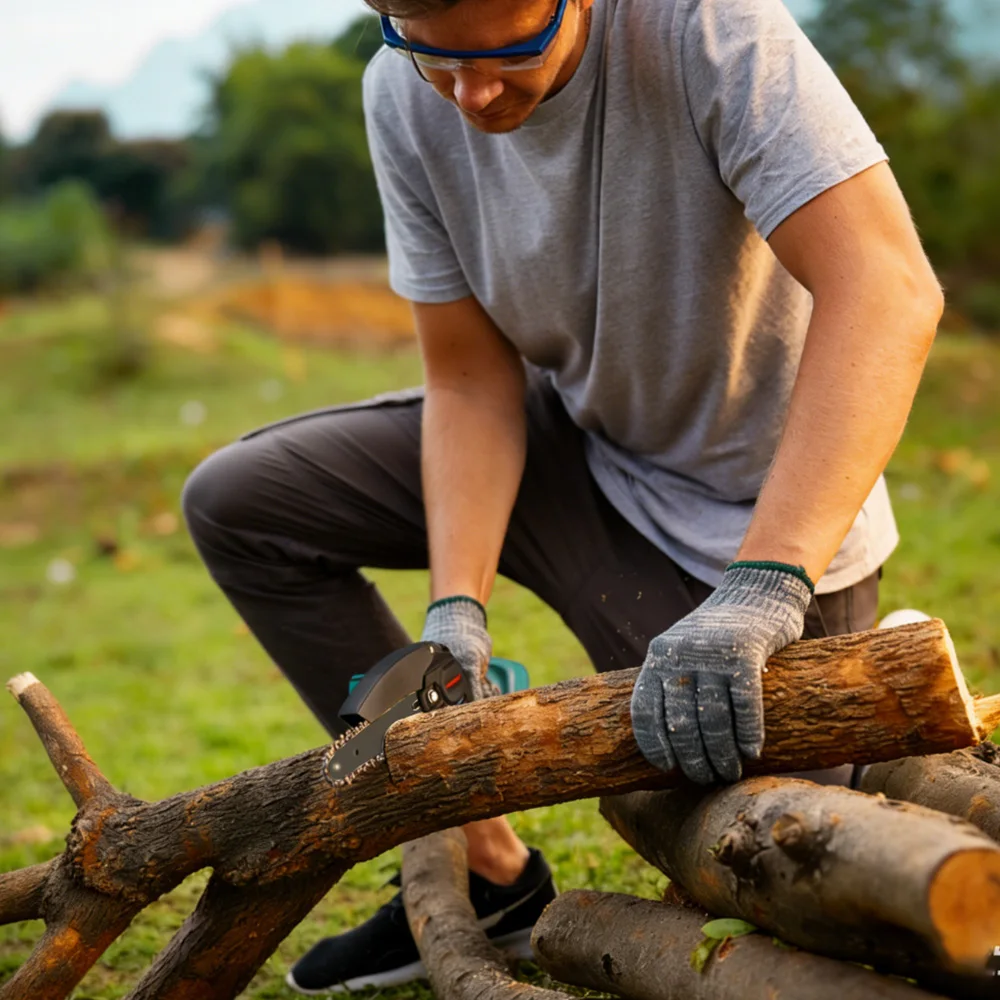 -Rechargeable electric chain saw, light and portable, long battery life, will not damage the bark.