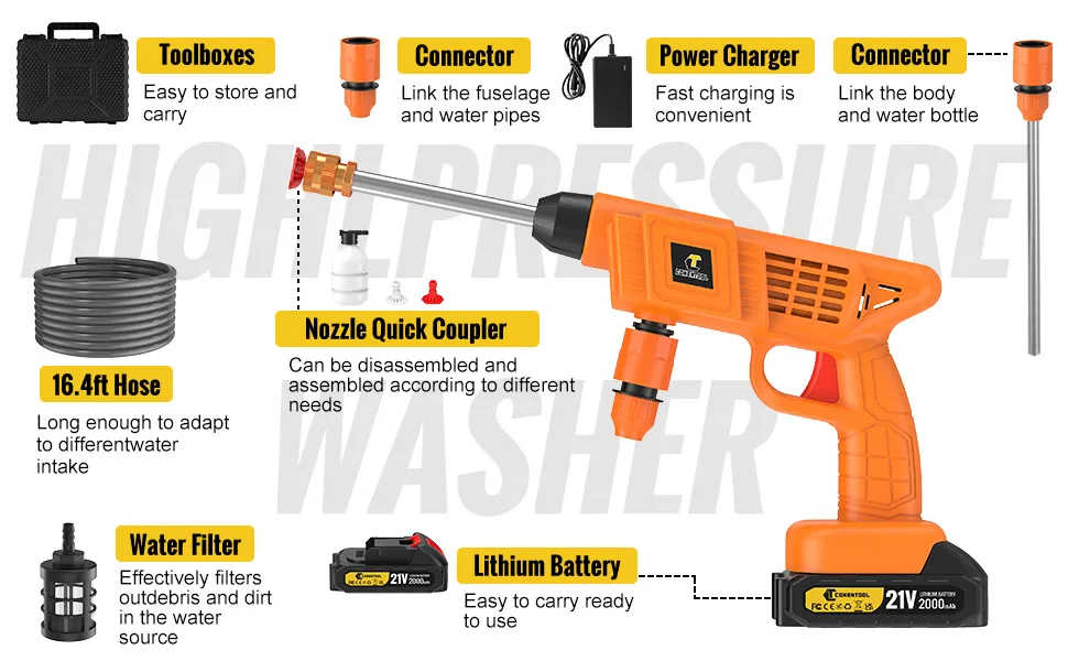 CONENTOOL 40Bar High Pressure Washer 5m Water Hose Cordless Household Car Garden Cleaning Power Tool For Makita 18V Battery Pin