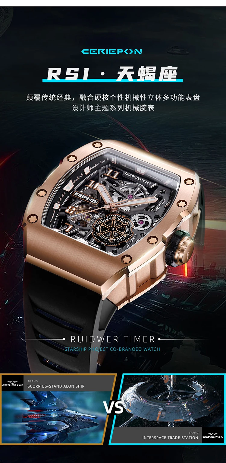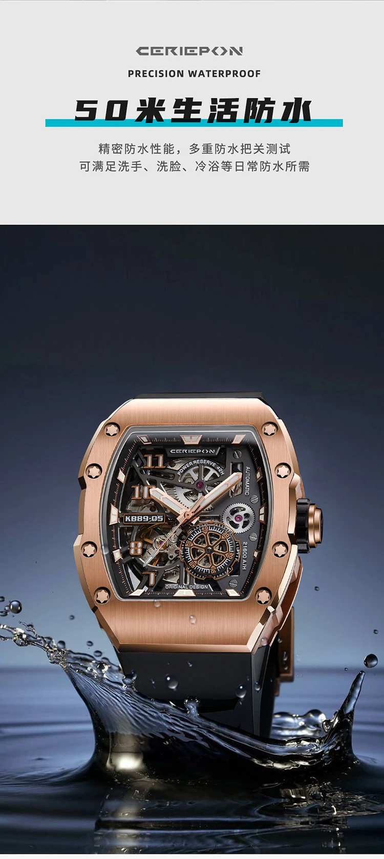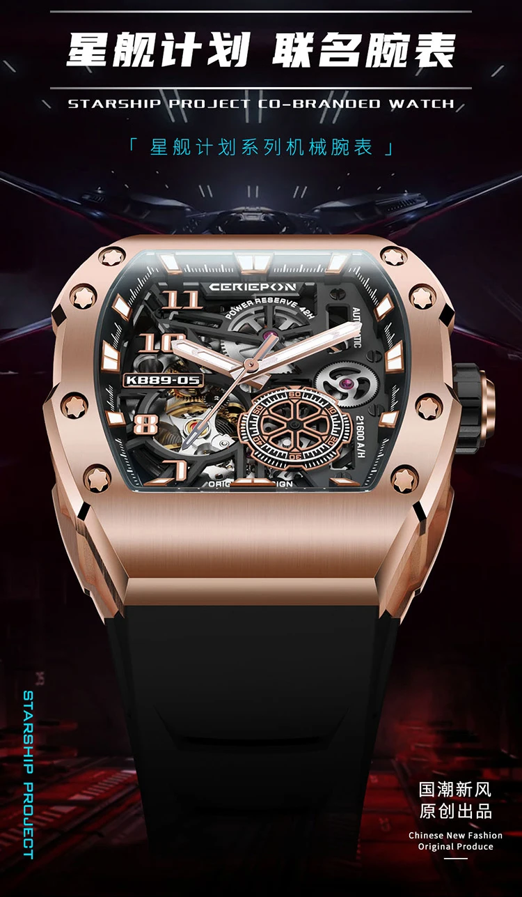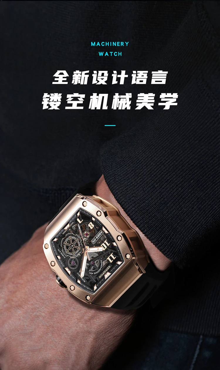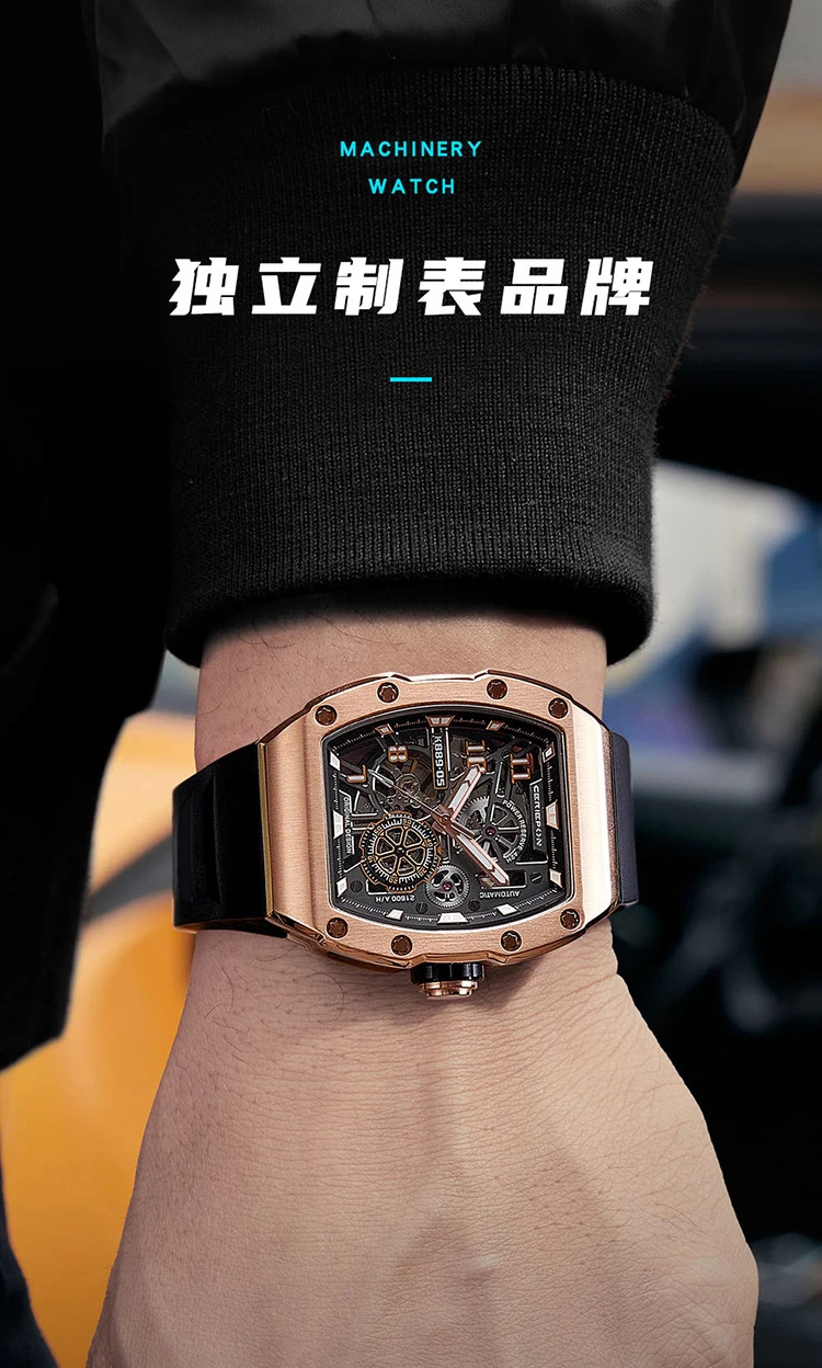 Custom Men’s Watch Luxury Automatic Watches for Men High-end Hollow Rose gold Stainless Steel Mechanical Wrist Watch Reloj Clock