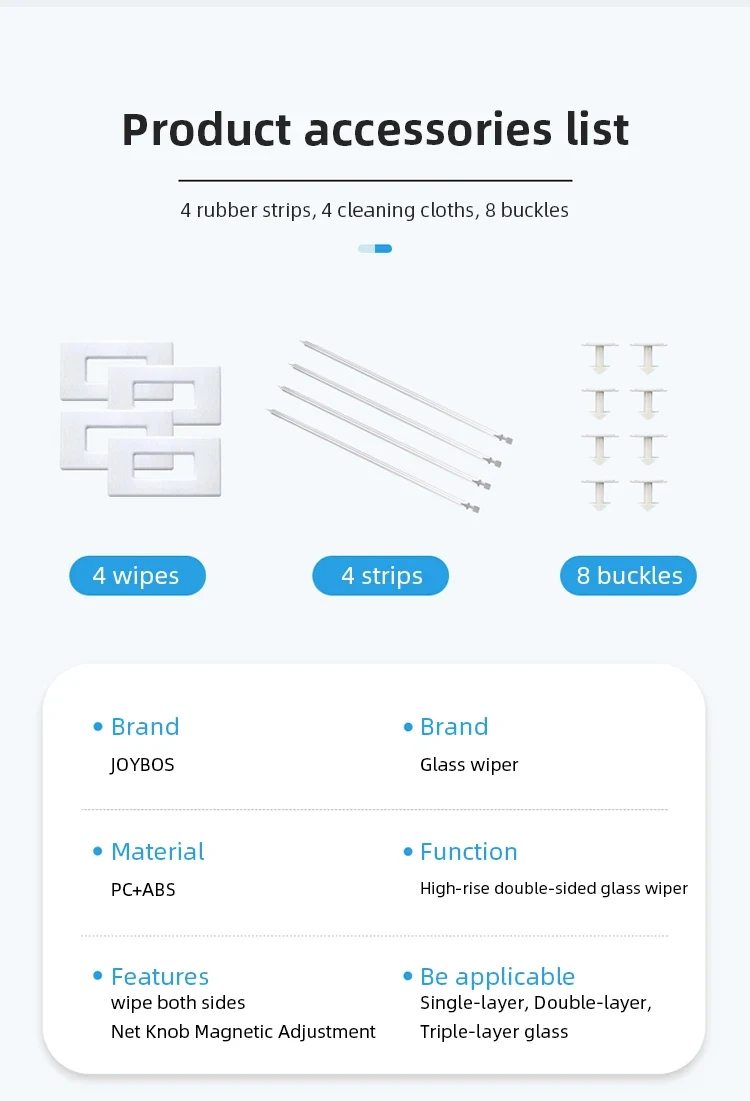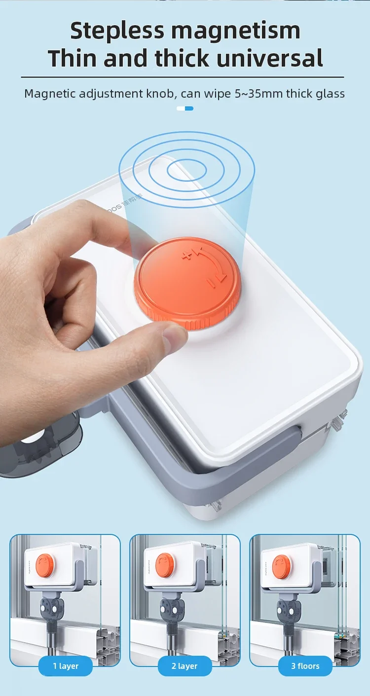 2、Automatically adjust the magnetism, suitable for a variety of glass thicknesses, whether thin glass or thick glass can be adjusted according to the strength of the magnetism, and can wipe up to three layers of glass