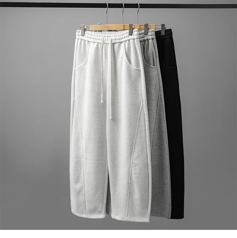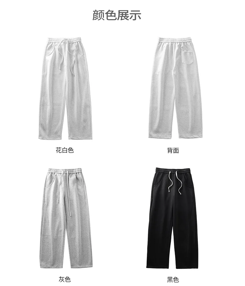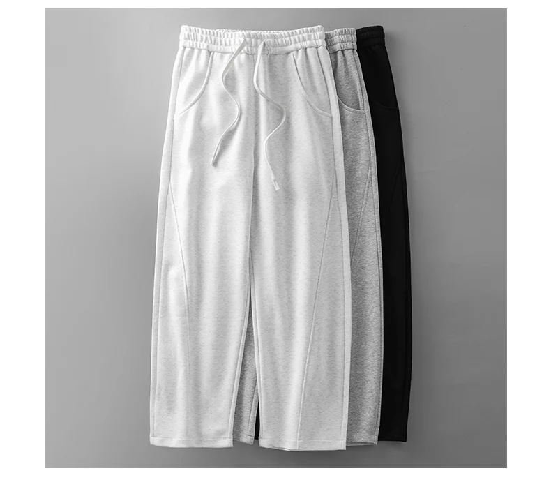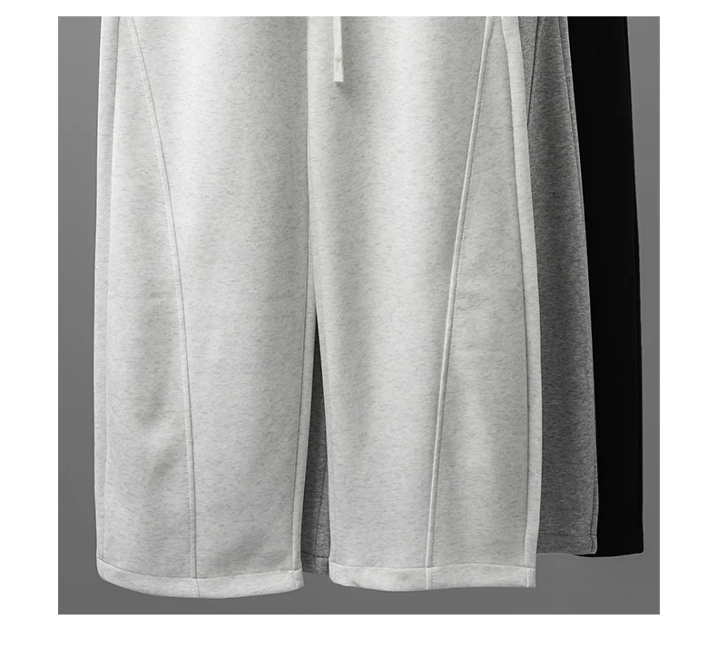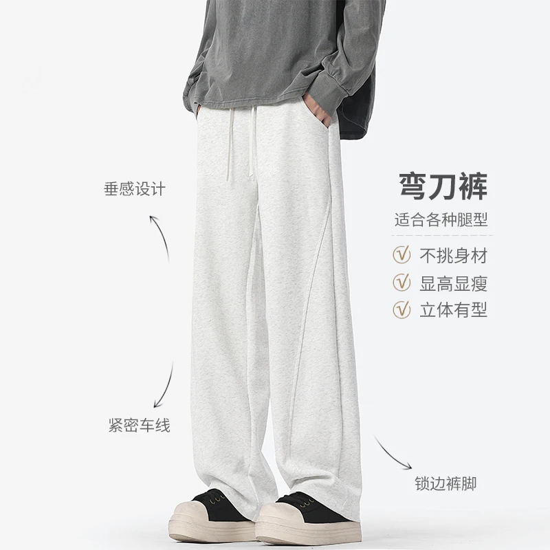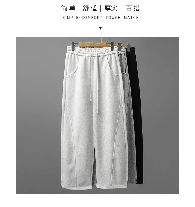 DUKEEN 400G Heavyweight Men’s Curved Seam Sweatpants Spring and Autumn New Grey Straight-Leg Loose Fit Sports Long Pants