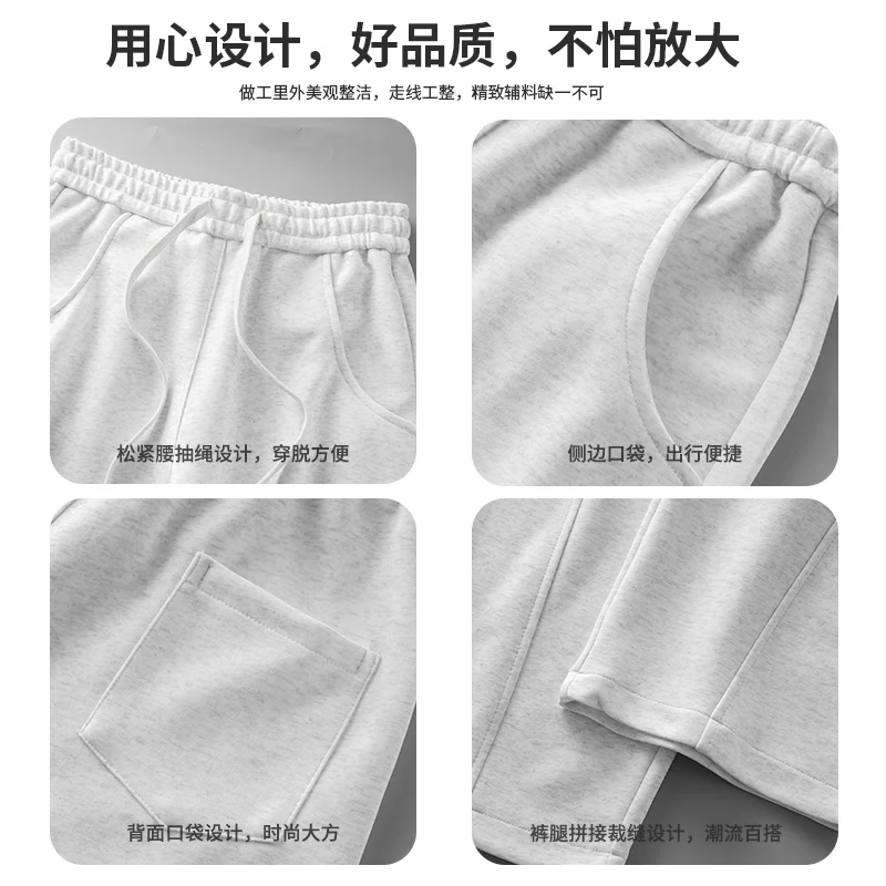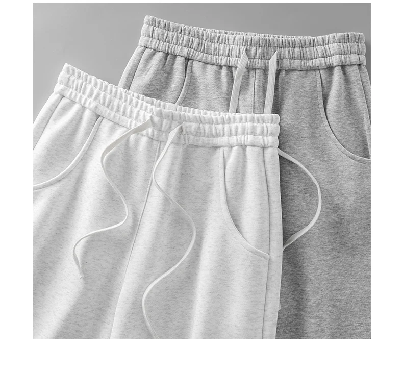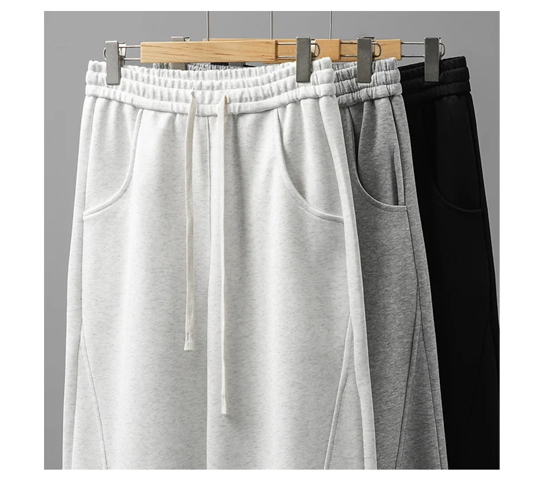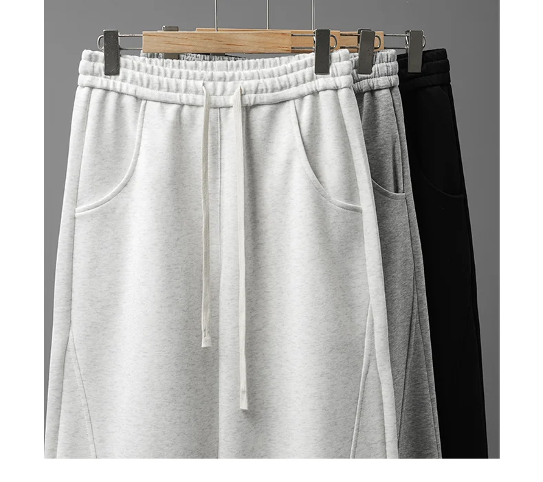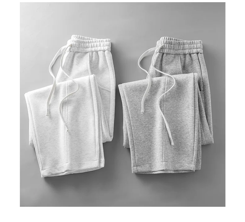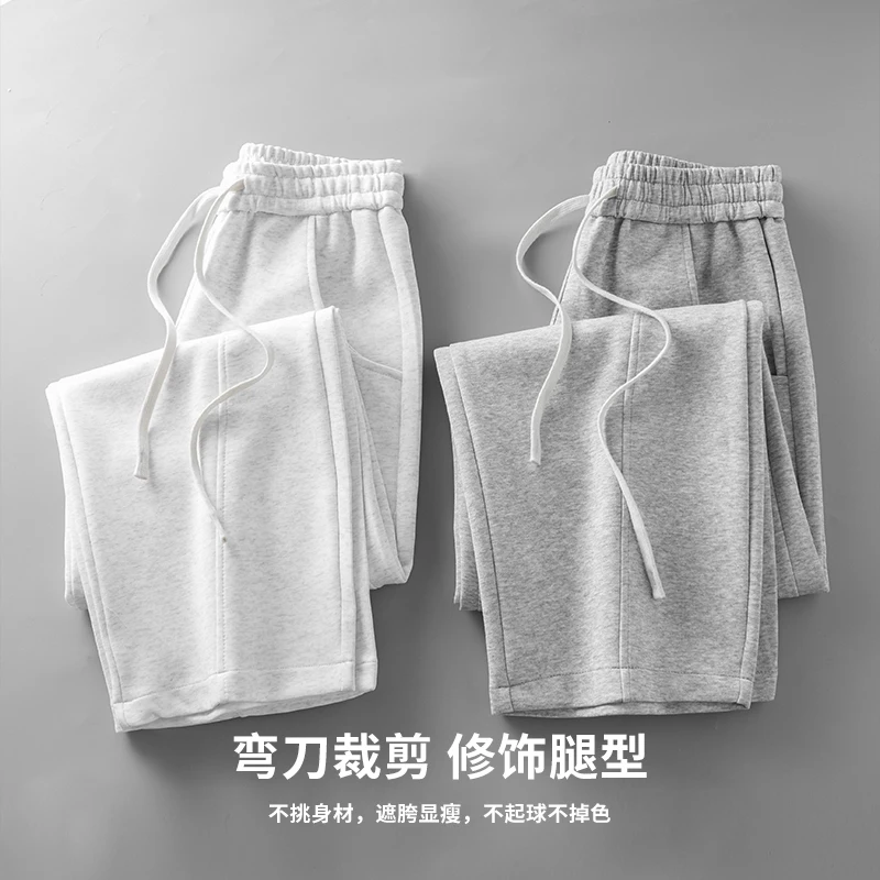 DUKEEN 400G Heavyweight Men’s Curved Seam Sweatpants Spring and Autumn New Grey Straight-Leg Loose Fit Sports Long Pants