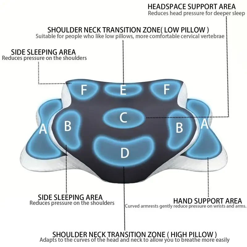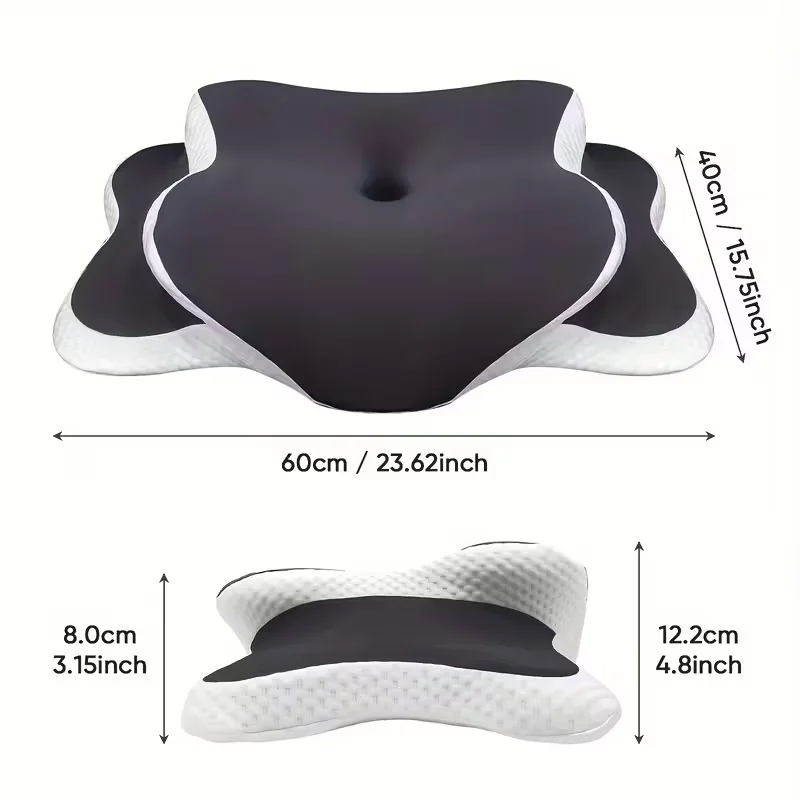 Ergonomic memory foam butterfly neck pillow, C-shaped/adjustable dual height, transparent cover support – side/supine/pillow sle