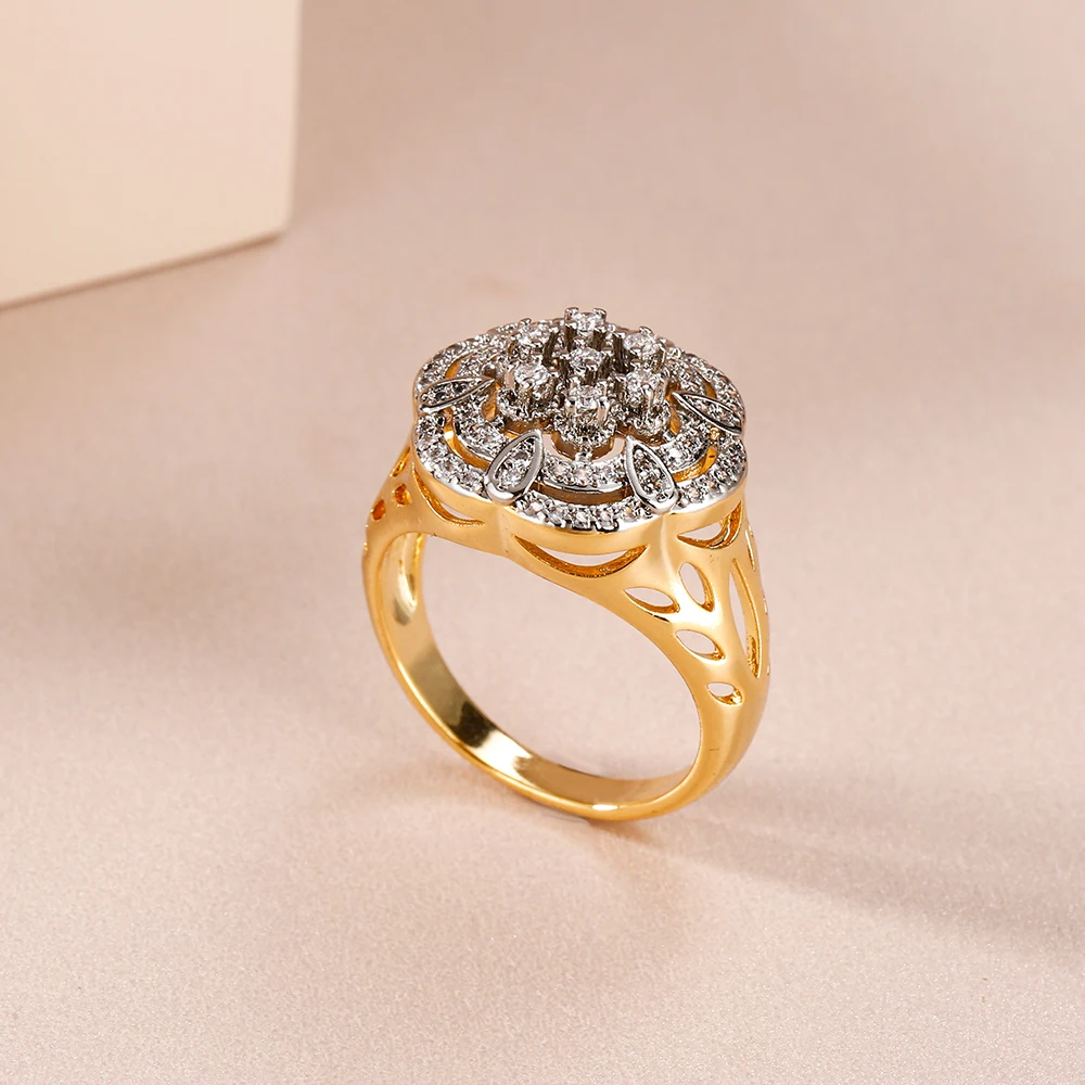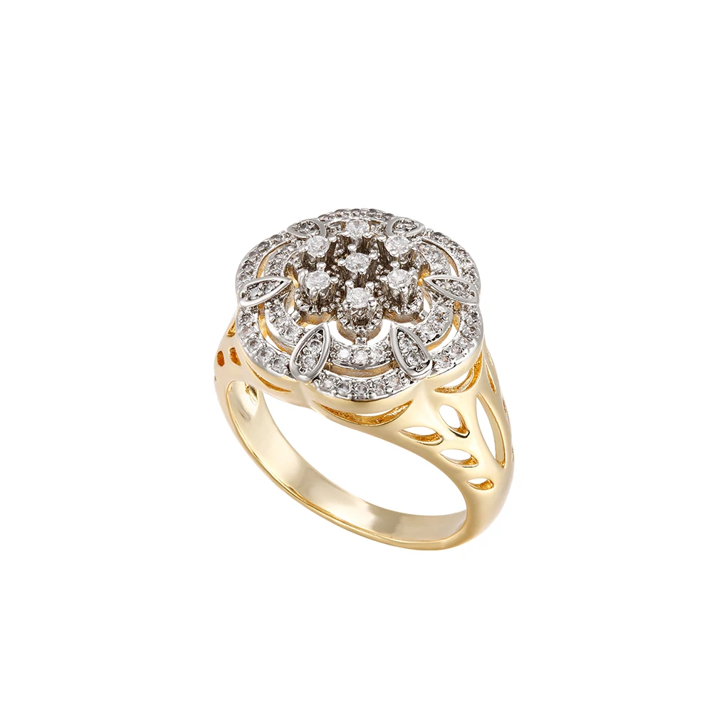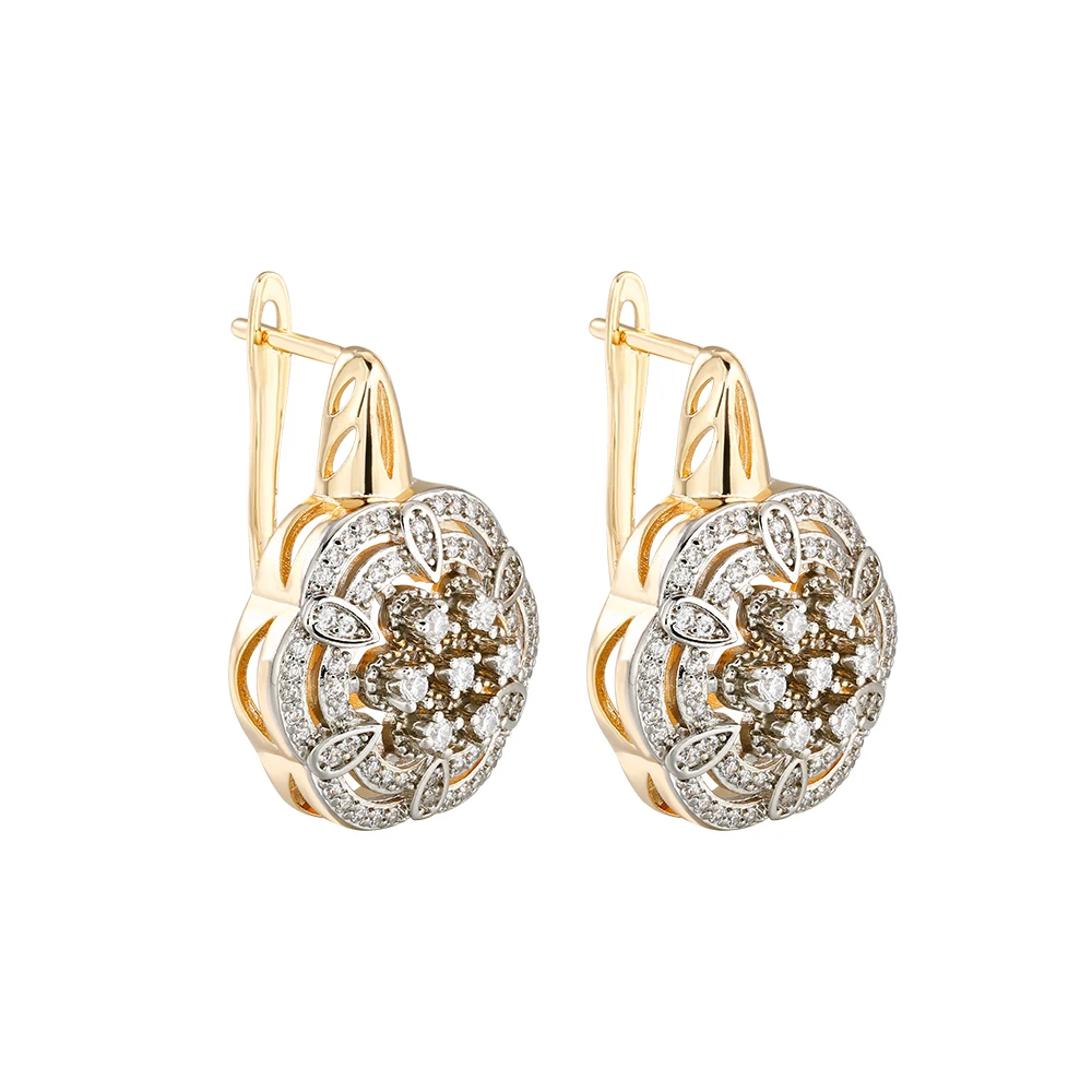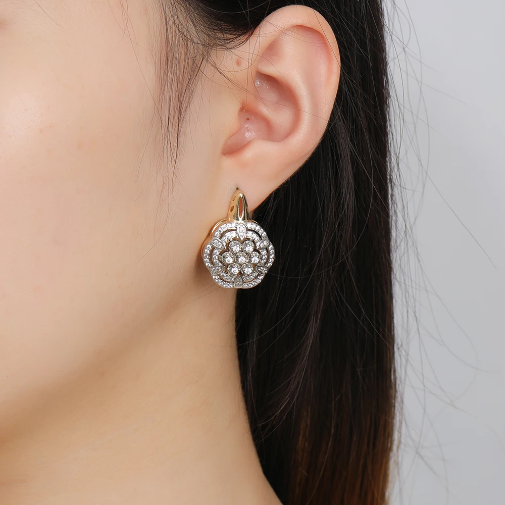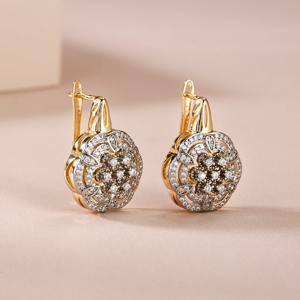 Hollow floral design inlaid zircon earrings set ring copper plated 14K gold fashion jewelry wedding banquet gift accessories
