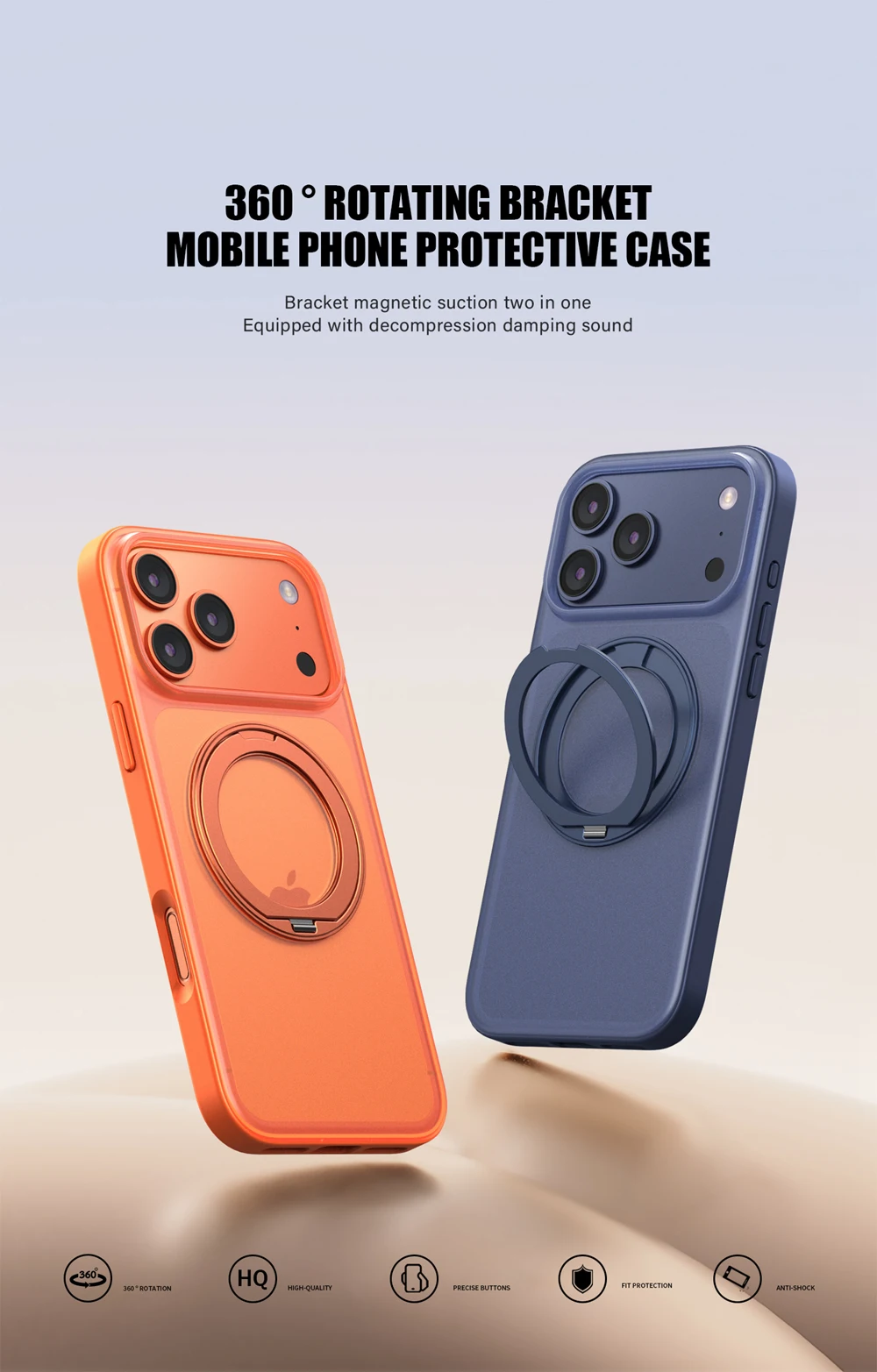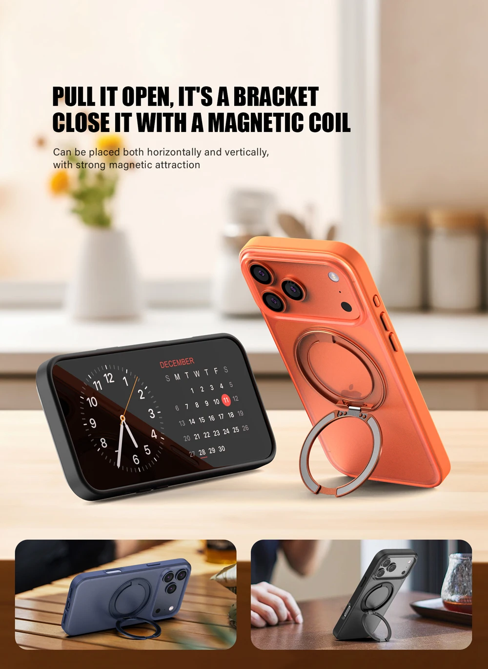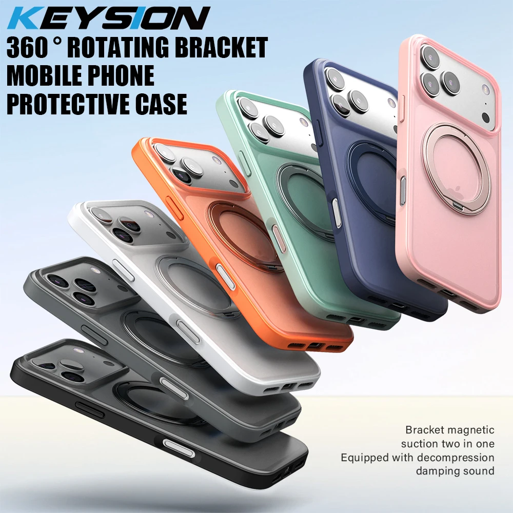 KEYSION 360° Rotating Magnetic Ring Stand Case for MagSafe for iPhone 17 Pro Max 17 Air Matte Transparent Shockproof Phone Cover