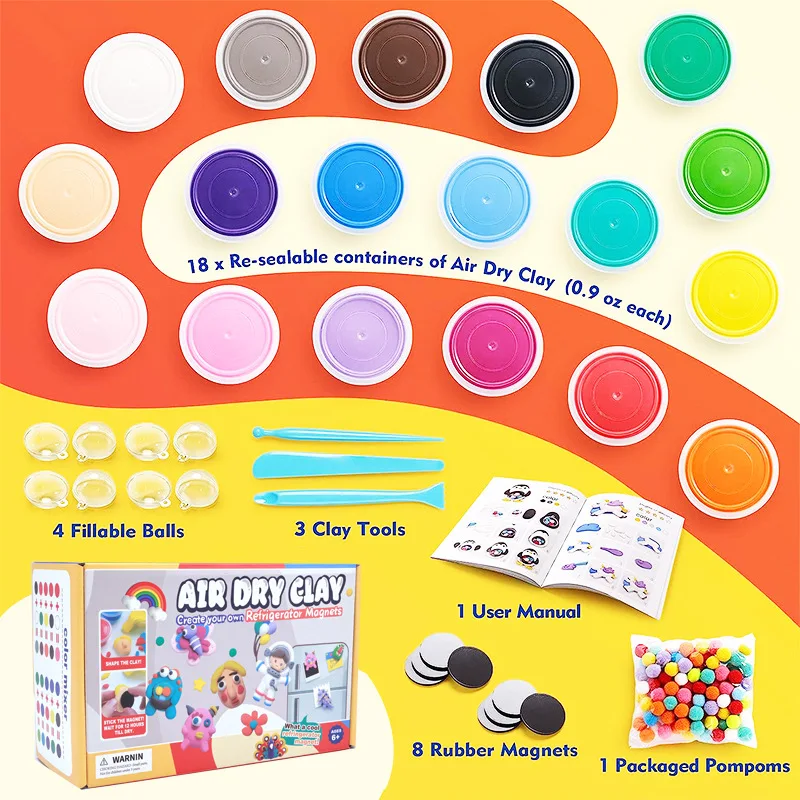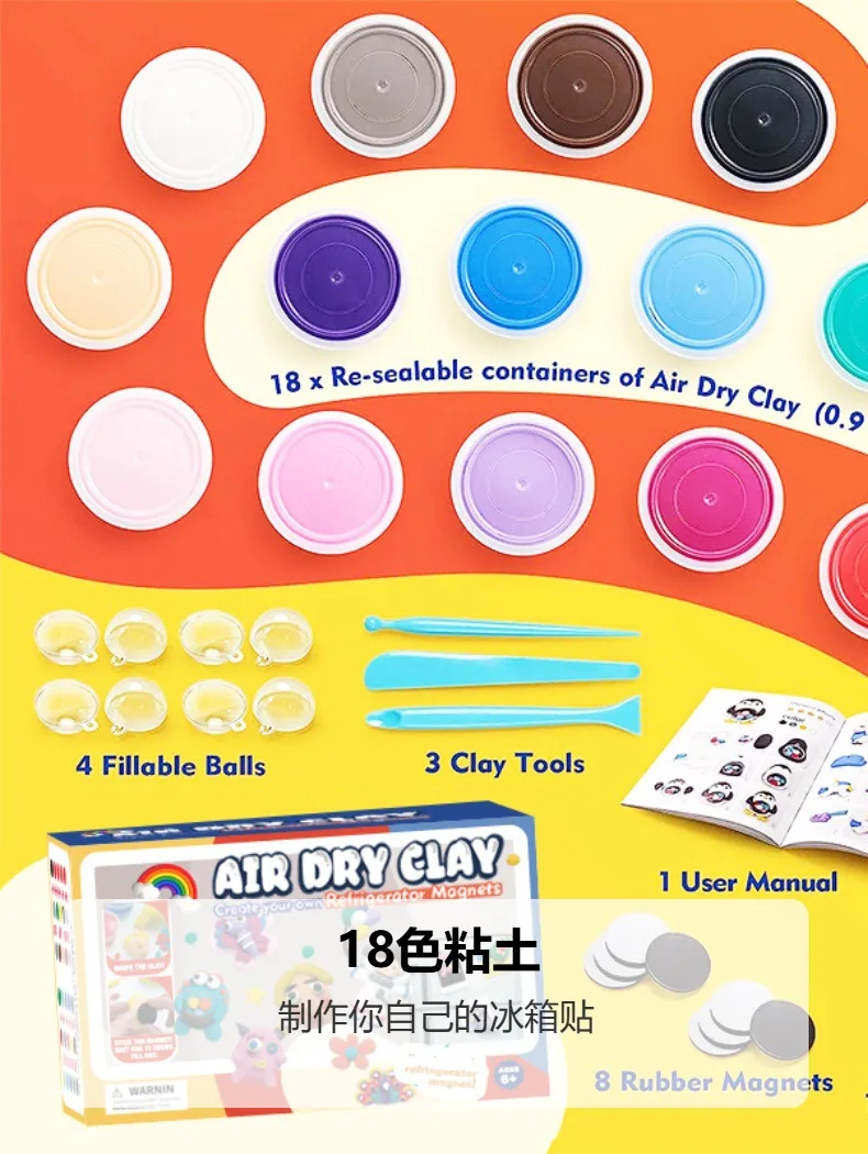 Be the first to review “Kids DIY Manual Fridge Plasticine Clay 18 Colors Ultra Light Air Dry Modeling Clay Non Toxic Safe Toy Set for Children Art Craft” Cancel reply