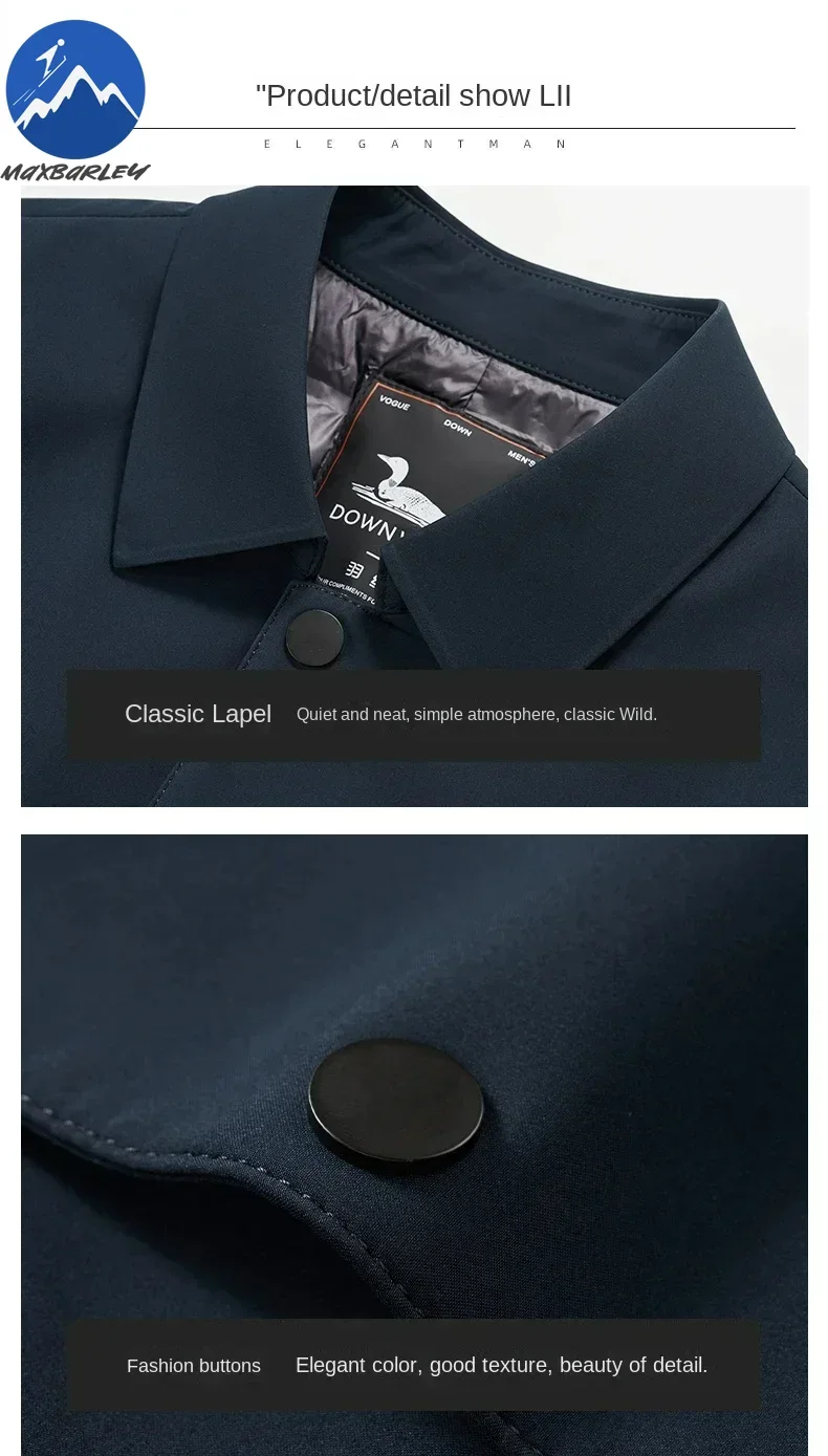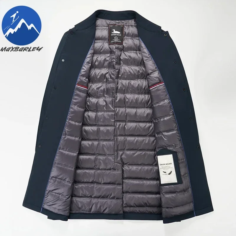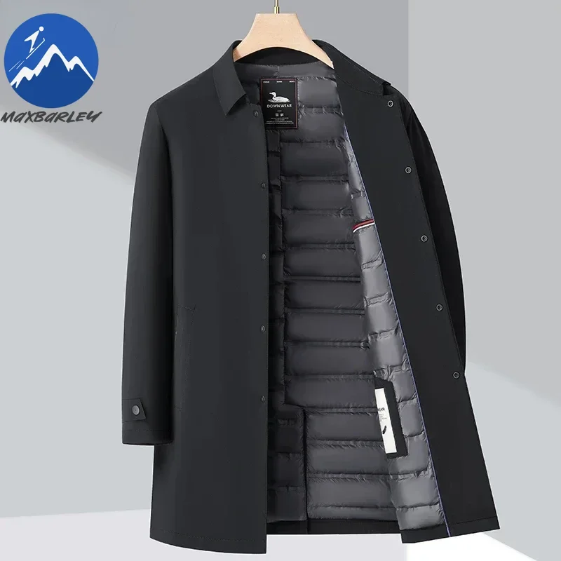 Luxury Brand Long Down Jacket Men’s Winter Casual Thick Flip Collar White Duck Down Warm Parka Business Lightweight Trench Coat