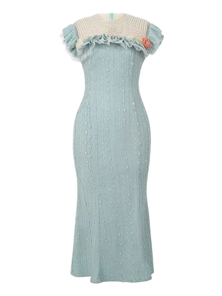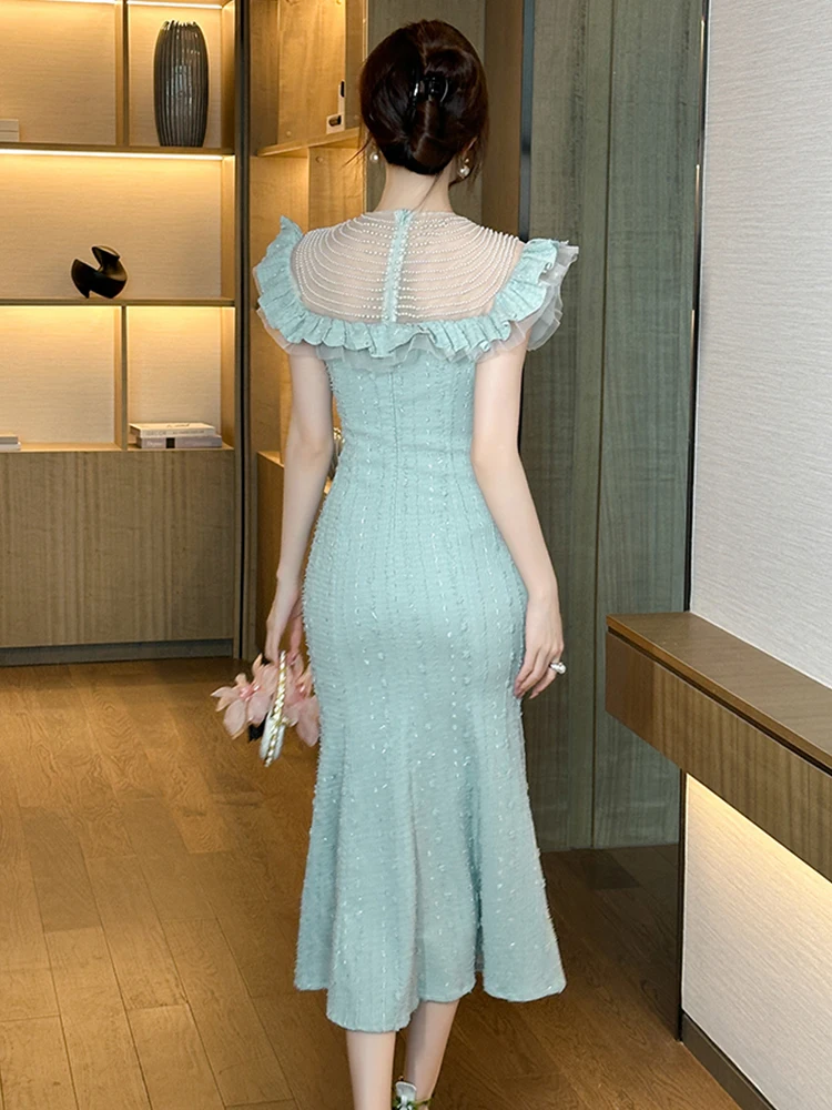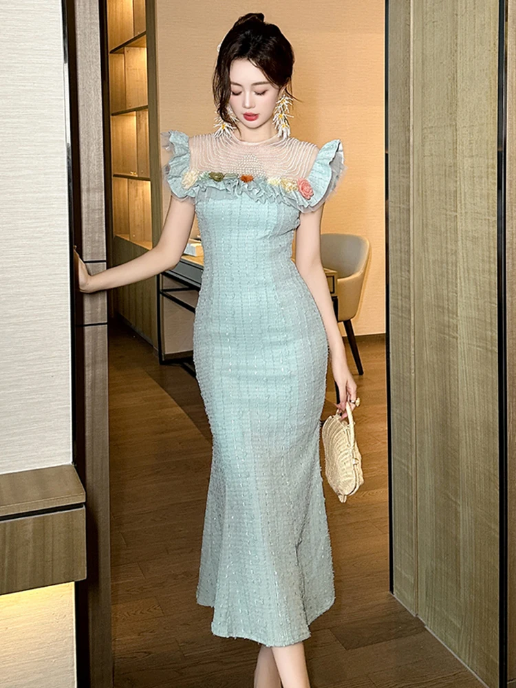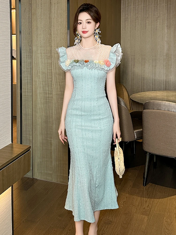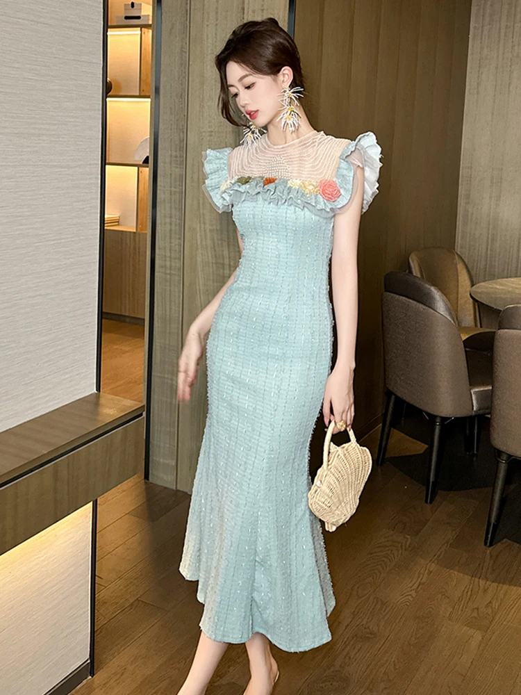 Luxury Elegant Ball Dress Women Delicate French Pearl Beading Flowers Ruffles Fishtail Robe Birthday Party Banquet Vestido Mujer