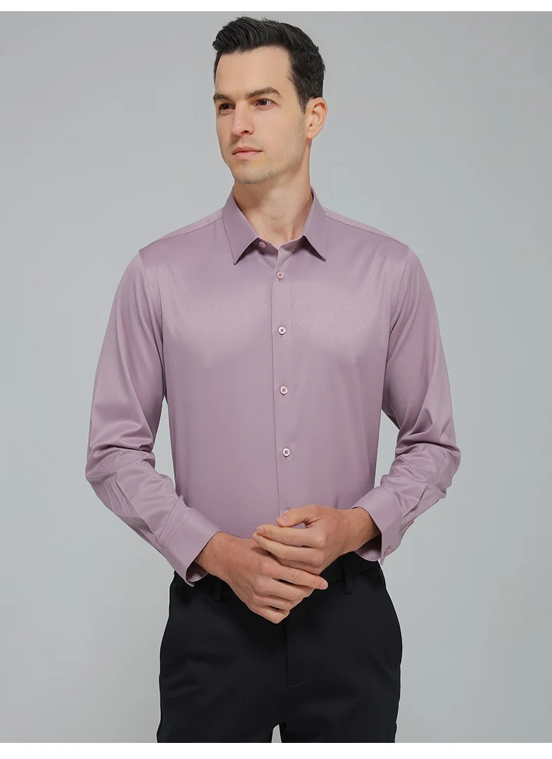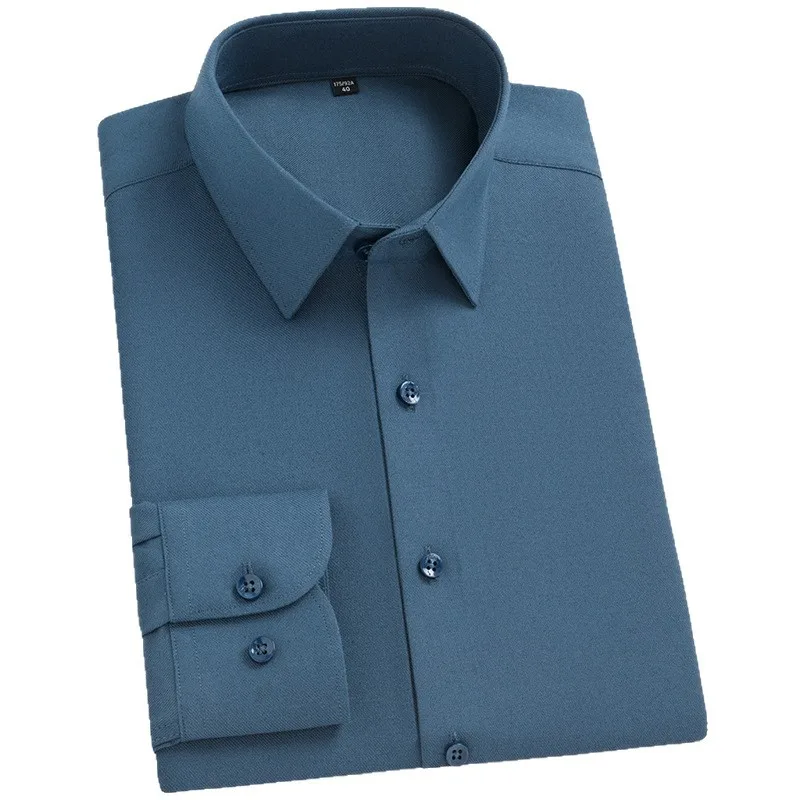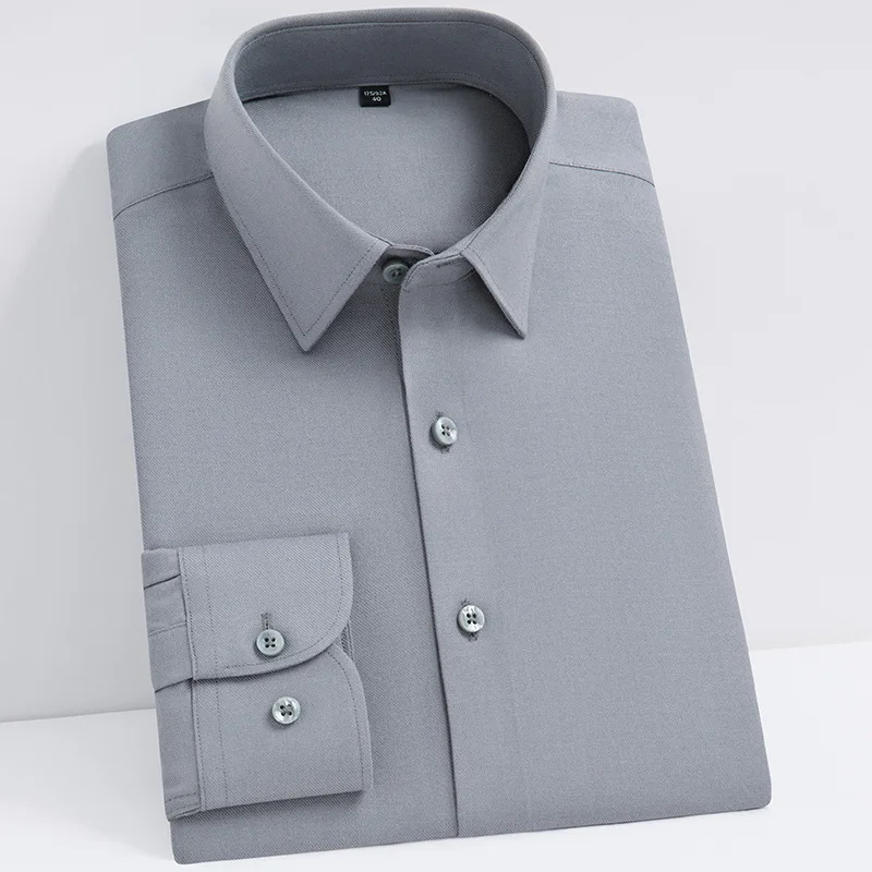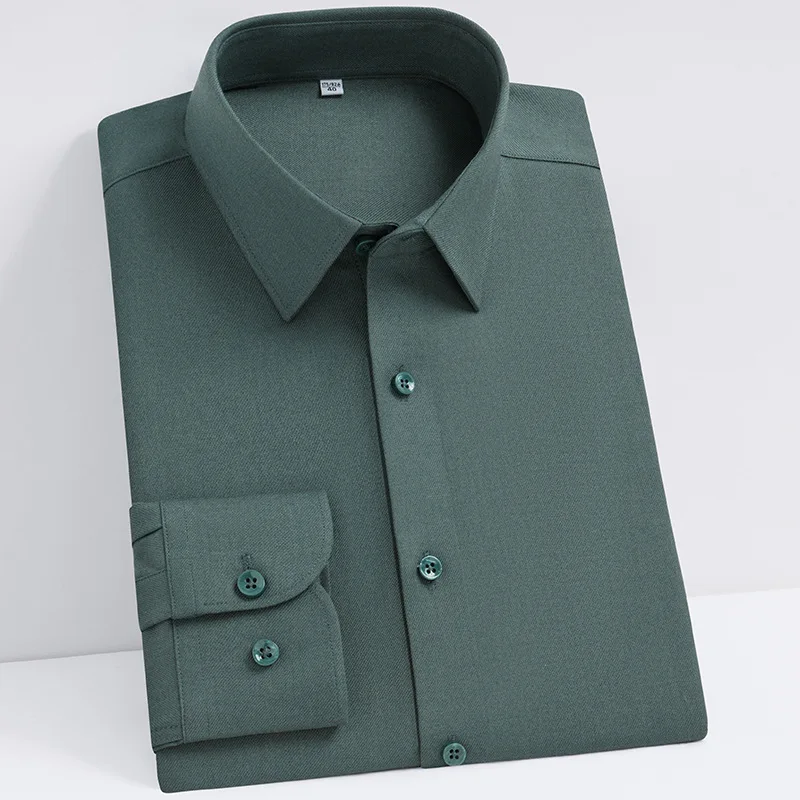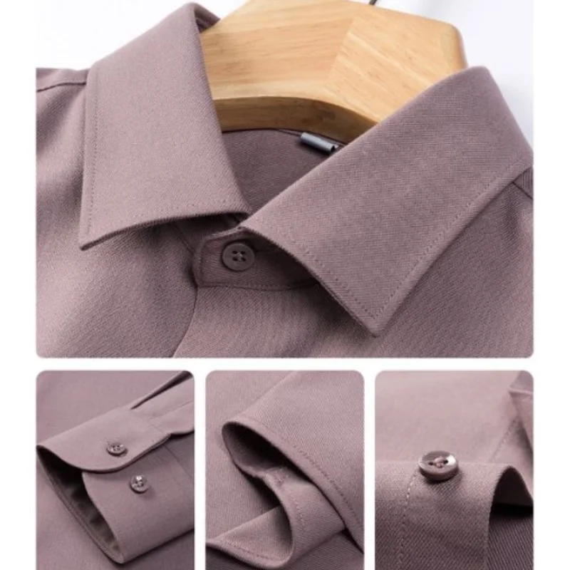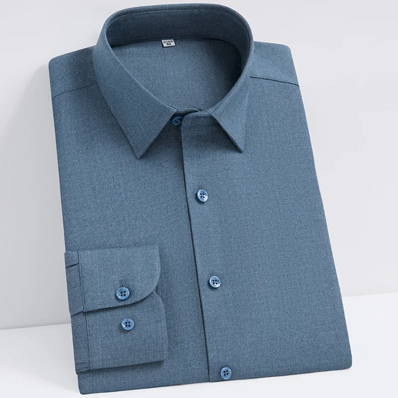 Men’s Wool Shirt 2025 Long Sleeve Solid Color Business Casual Quality Autumn Shirts Comfortable Formal Office Wear
