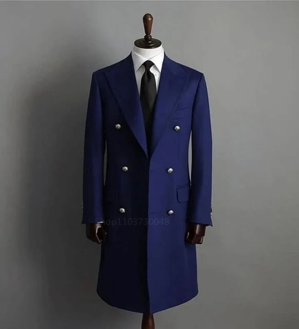 Smart Casual Navy/Black Woolen Men Blazer with Peak Lapel Double Breasted Dinner Jacket Elegant Suit Coat for Wedding/Business