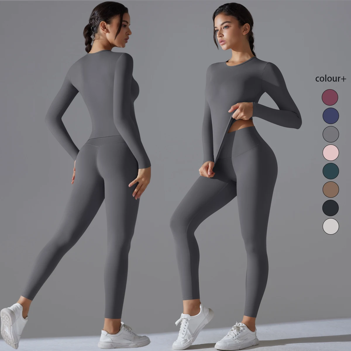 Yoga Suit Sports Set Sleeve Breathable Stretchy GYM Yoga Slim Fitness Active Top BreathableTummy Control Slimming Booty Leggings